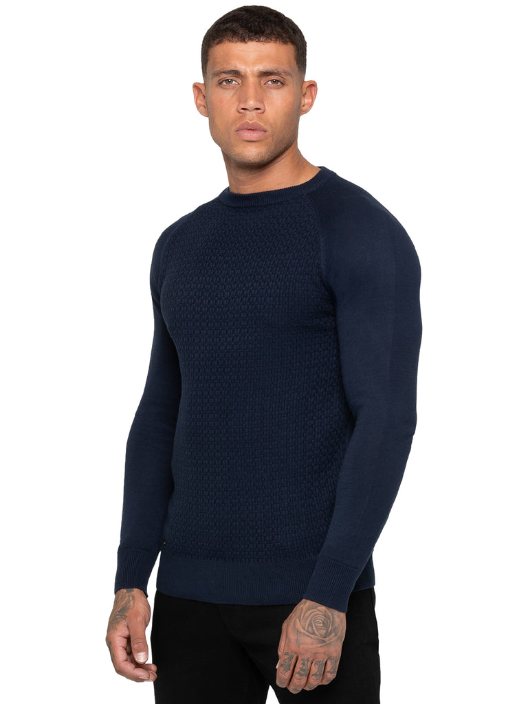 Cotton Crew Neck Casual Textured Jumper - Navy