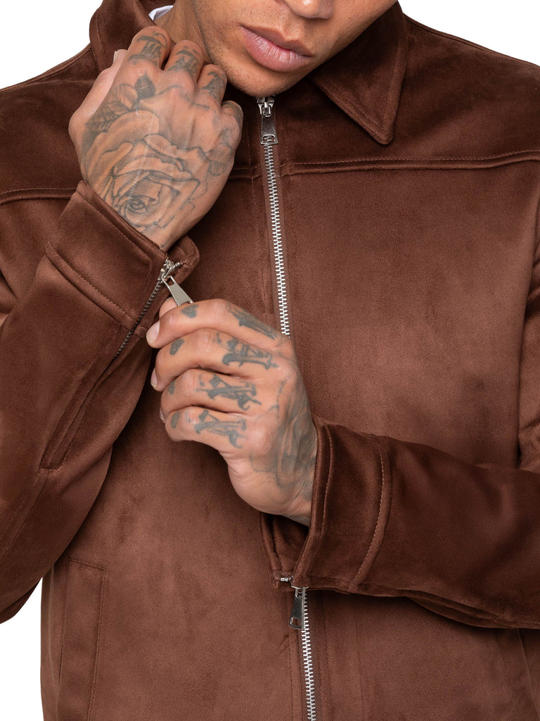 Luigi Faux Suede Collared Jacket - Brown