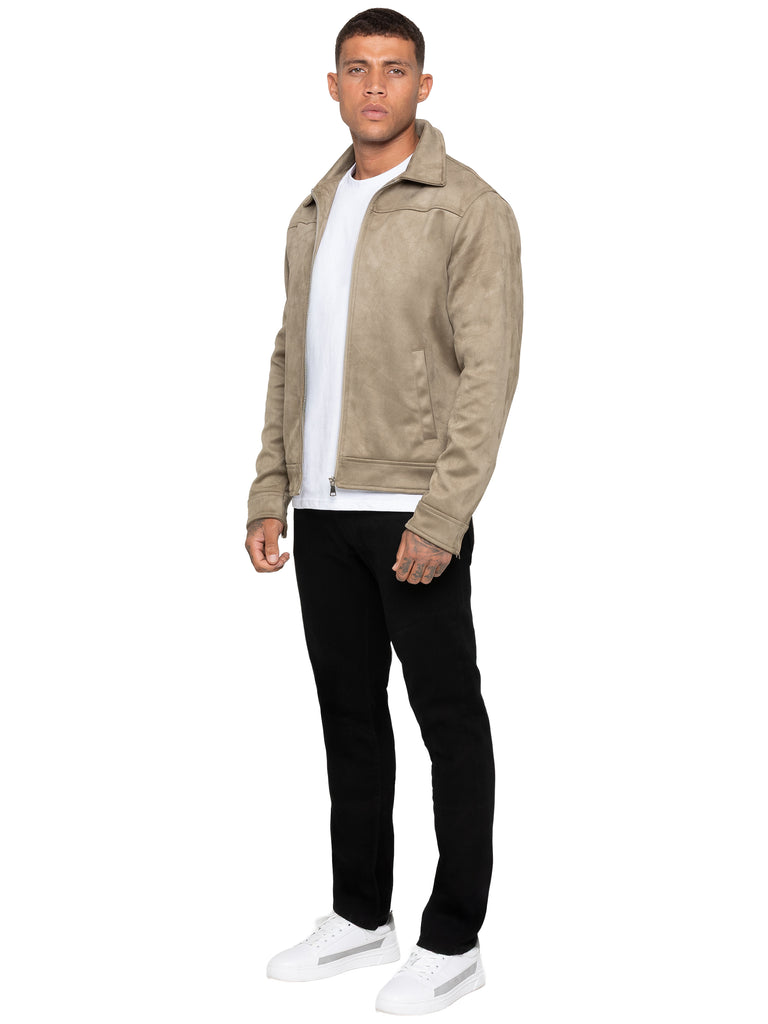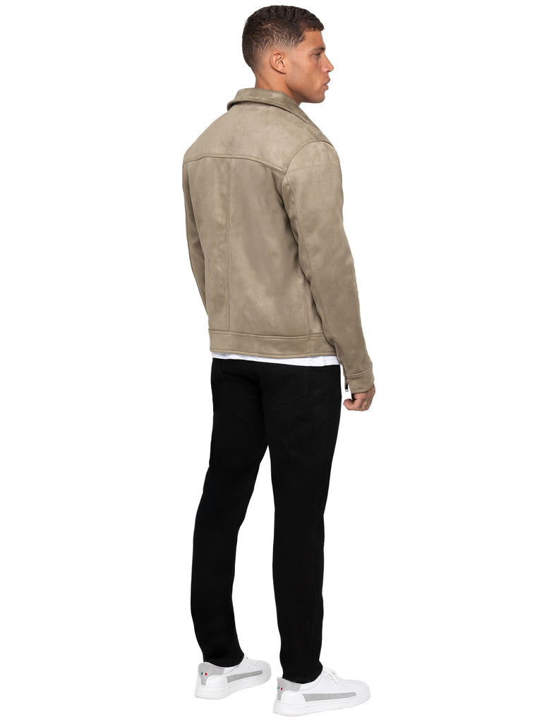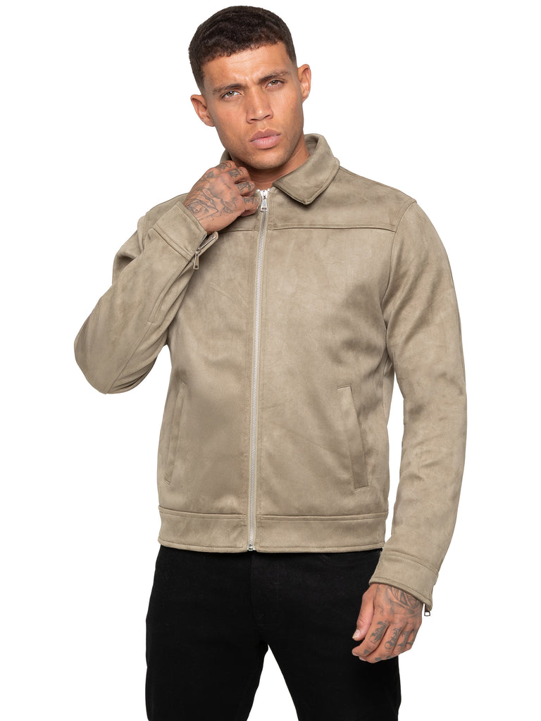 - Men's stone faux suede jacket.