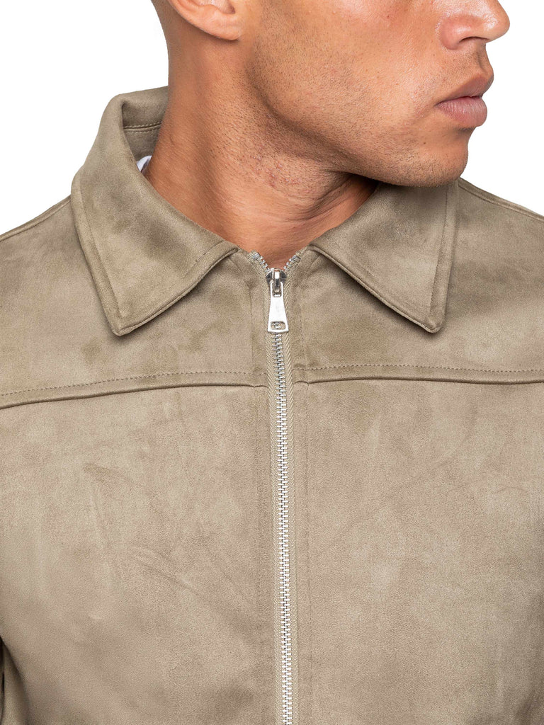 Luigi Faux Suede Collared Jacket - Stone