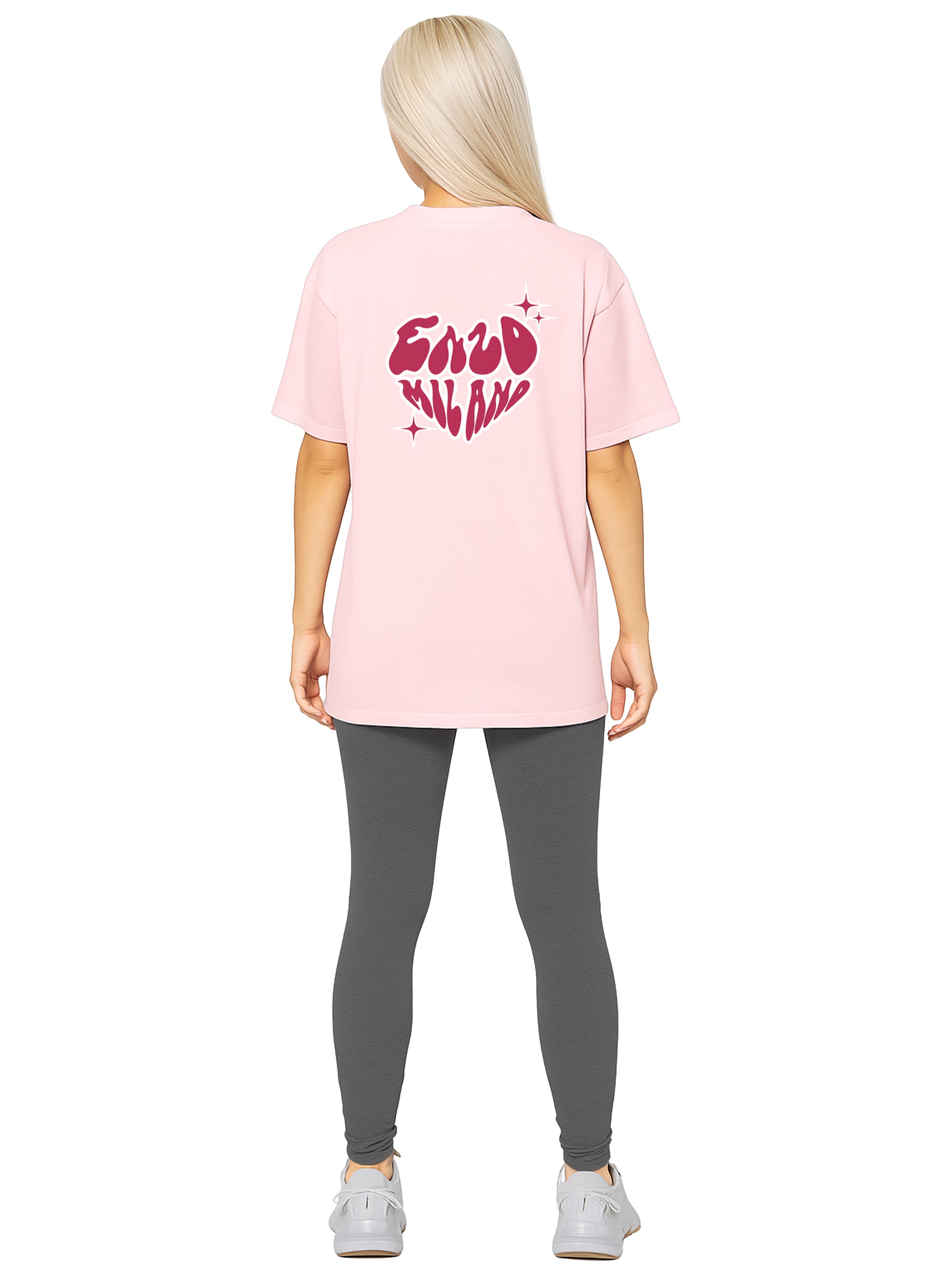 Pink oversized fit t shirt and stretchy leggings set.